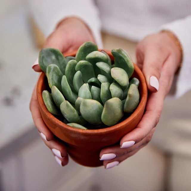 Un amestec fascinant deșertic de alstroemerii, gura-leului, eucalipt și suculente.. În fotografie este buchetul în mărimea PREMIUM (24 de fire + 2 succulente)